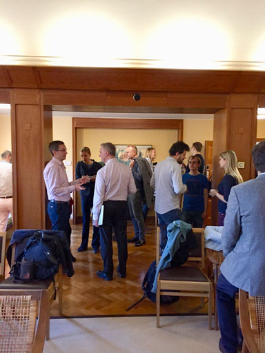 The session before noon included presentations by Johannes Abeler, Associate Professor in Economics, University of Oxford and Vincent Crawford, Drummond Professor of Political Economy, University of Oxford. Prof Abeler presented a new project building on his previous work on tax incentives. Prof Crawford presented part of his research on the role of coordination and natural-language communication in relationships.
